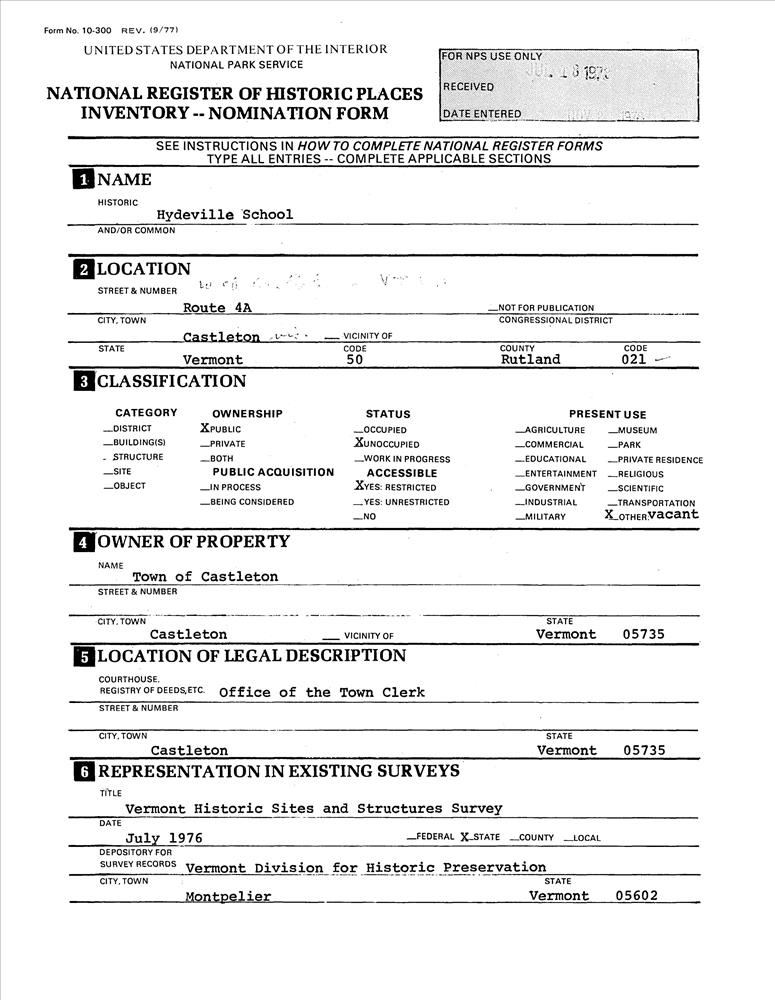 Hydeville School