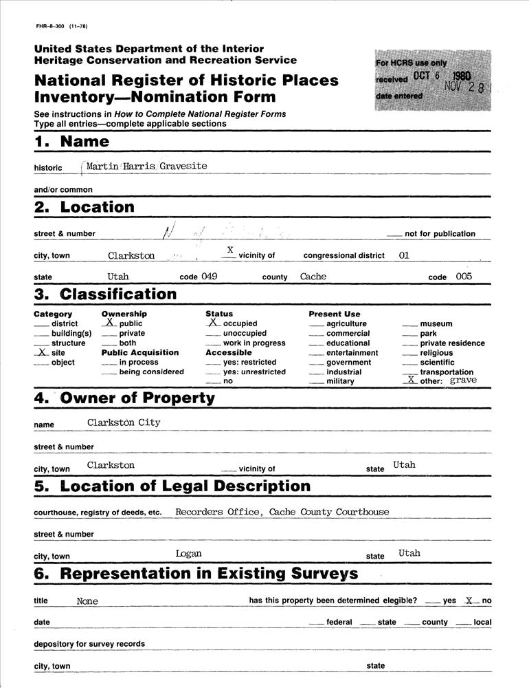 Harris, Martin, Gravesite