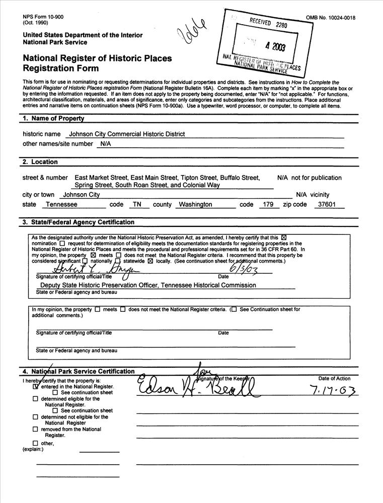 Johnson City ; E. Market St., E. Main St., Tipton St., Buffalo St., Spring St., S. Roan St., and Colonial Way