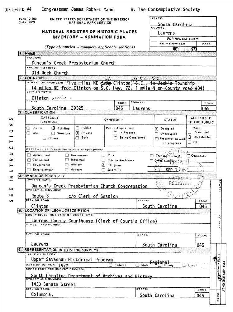Clinton ; 5 mi. NE of Clinton, off SC 72