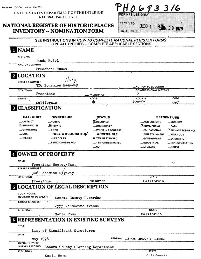 Freestone ; 306 Bohemian Hwy.
