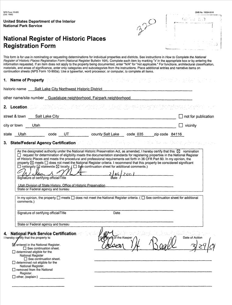 Salt Lake City ; Roughly bounded by 1100 West, 600 North, 500 West, and North Temple