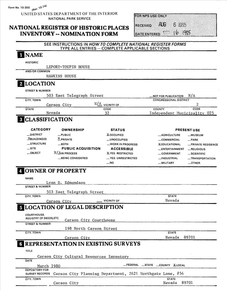 Carson City (Independent City) ; 503 E. Telegraph St.