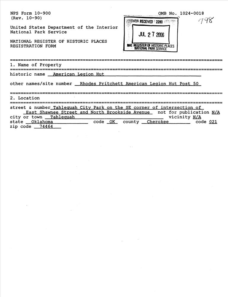 Oklahoma ; Tehlequah City Park, jct. of E Shawnee St. and N. Brookside Ave.