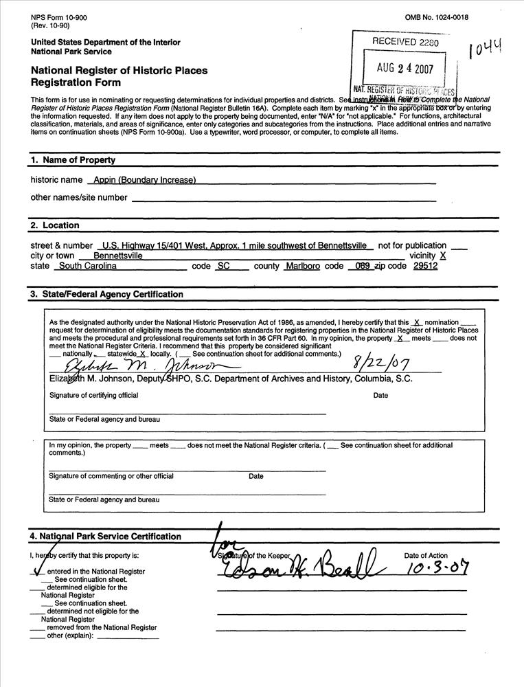 Bennettsville ; US 15/401 W, approx. 1 mi. SW of Bennettsville
