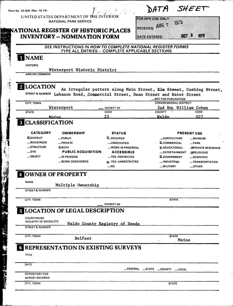 Winterport ; Irregular pattern along Main, Elm, Cushing, Lebanon, Commercial, Dean, and Water Sts.