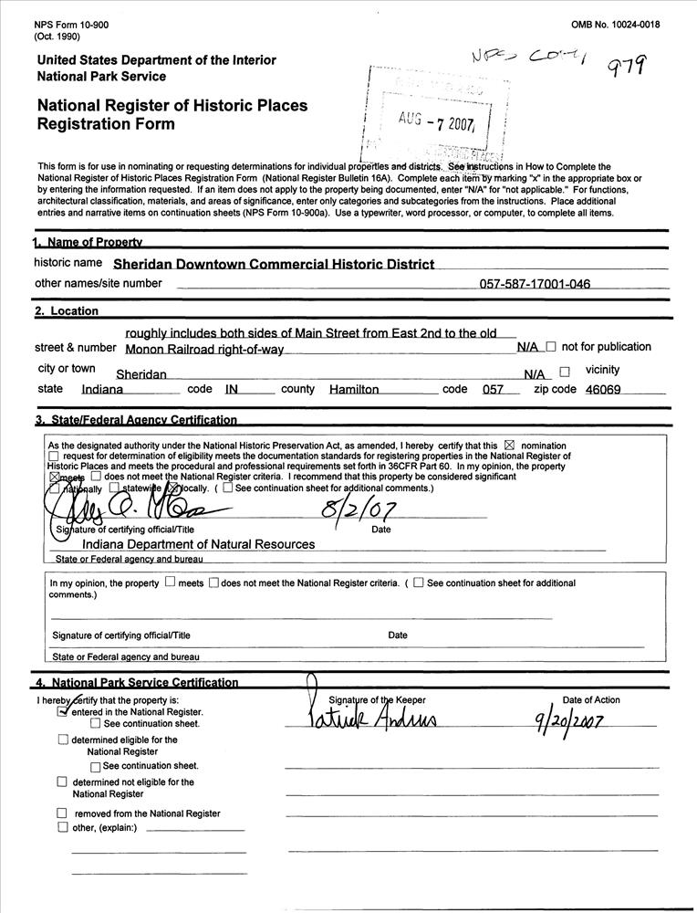 Sheridan ; Roughly includes Main St. from E. 2nd to the Old Monon Railroad right-of-way