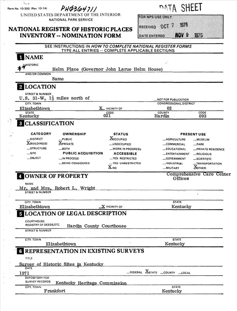 Elizabethtown ; 1.5 mi. N of Elizabethtown on U.S. 31W