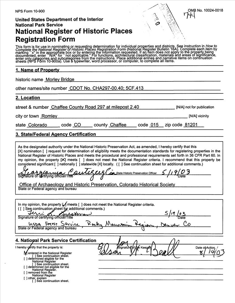 Romley ; Chaffee Cty Rd. 297 at milepost 2.40