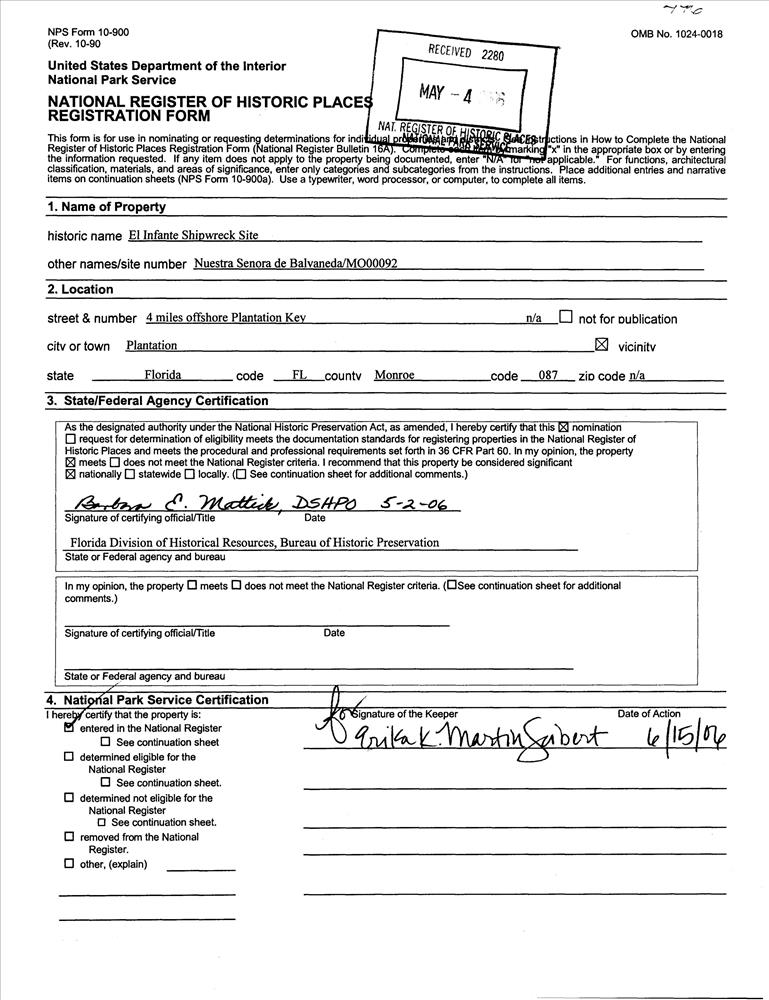 1733 Spanish Plate Fleet Shipwrecks MPS