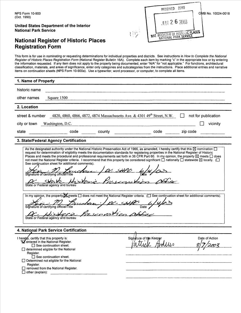 District of Columbia ; Washington ; 4820,4860,4872,4874, Massachusetts Ave., and 4301 49th St. NW