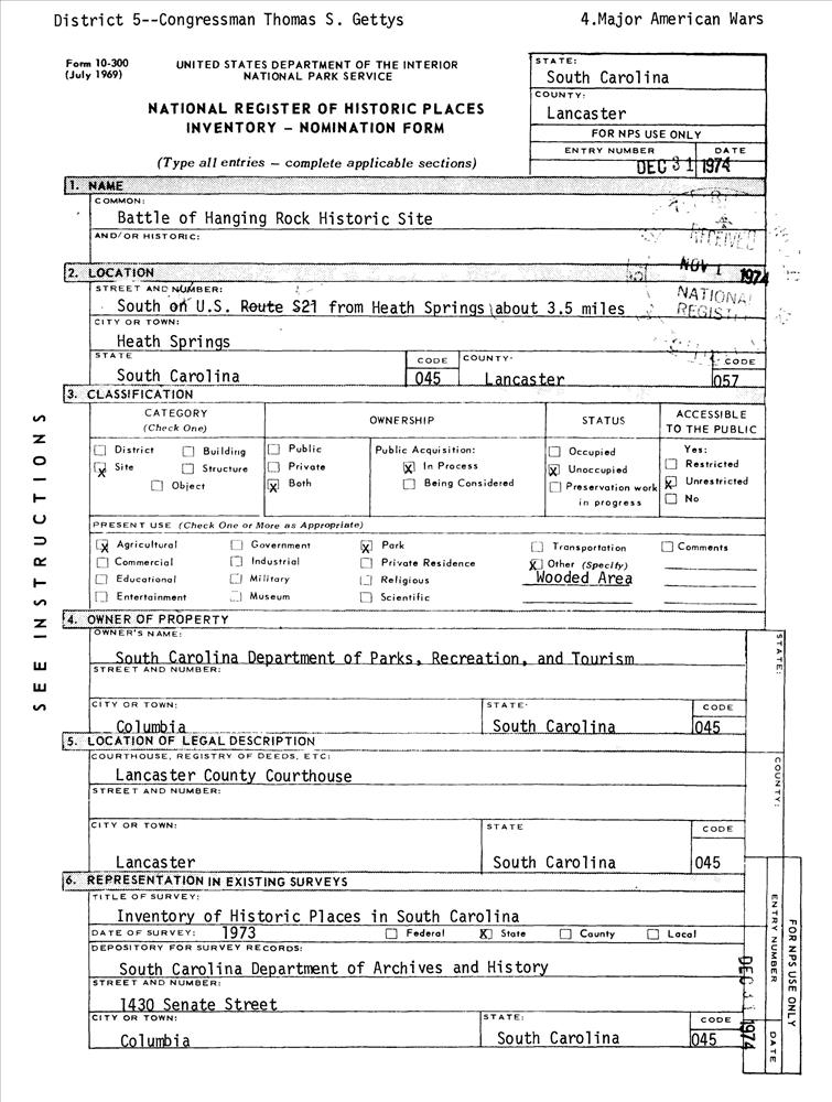 Heath Springs ; About 3.5 mi. S of Heath Springs off U.S. 521