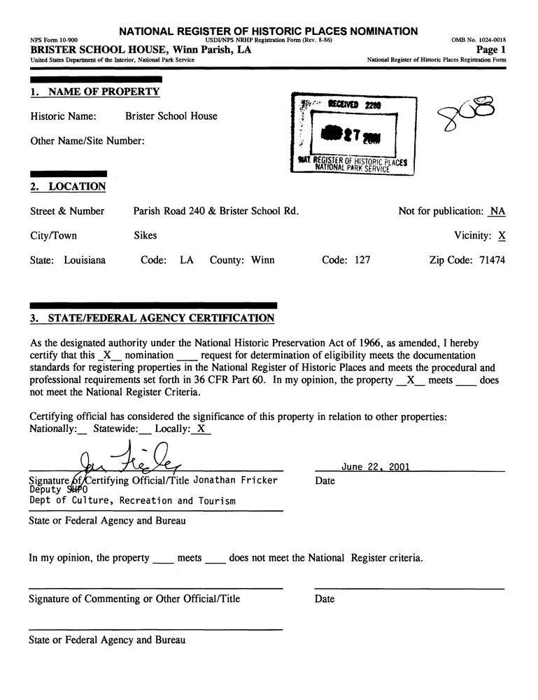 Sikes ; Parish Rd. 240 and Brister School Rd.