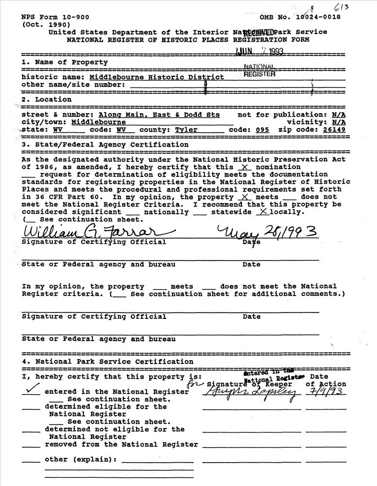 Middlebourne ; Main, East, and Dodd Sts.