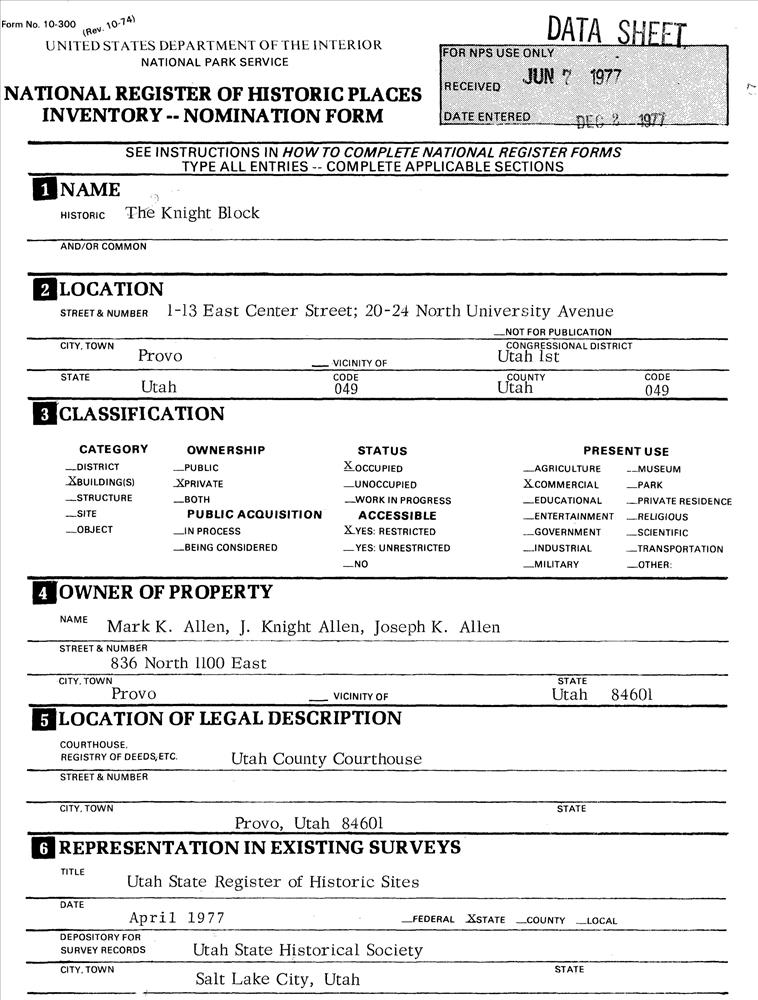 Provo ; 1--13 E. Center St., 20--24 N. University Ave.
