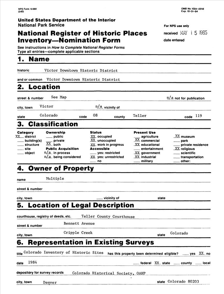 Victor ; Roughly bounded by Diamond Ave., Second, Portland and 5th Sts.