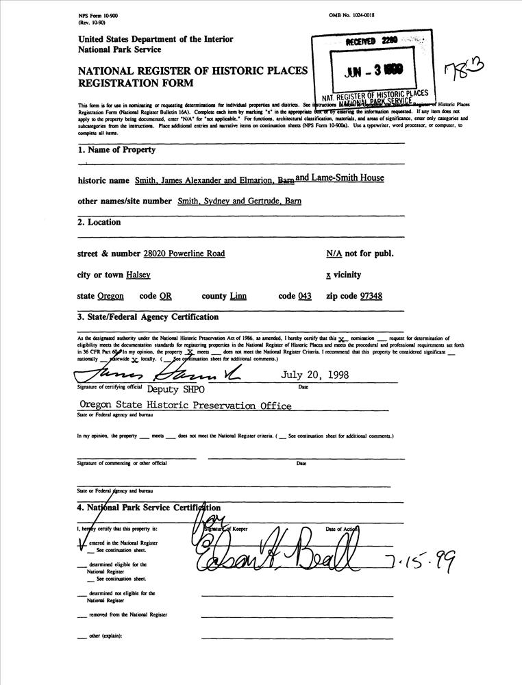 Smith, James Alexander, and Elmarion, Barn and Lame--Smith House