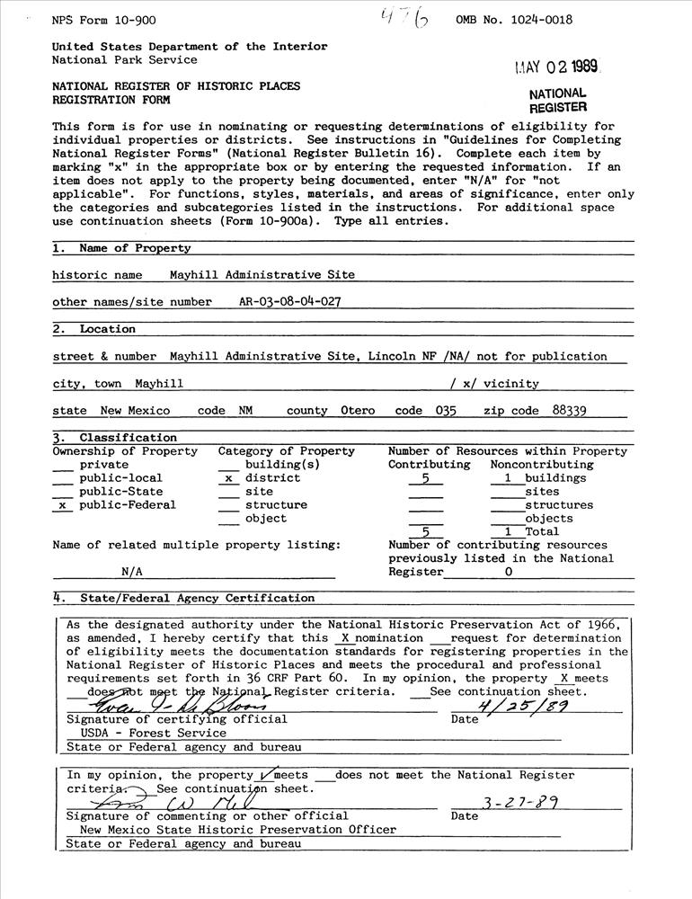 Mayhill ; US 82, 1.5 mi. N of Mayhill
