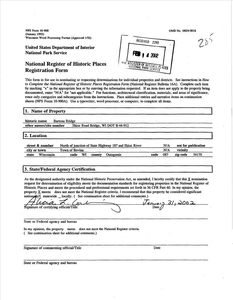 Bovina ; N. of WI 187 crossing of Shioc R.