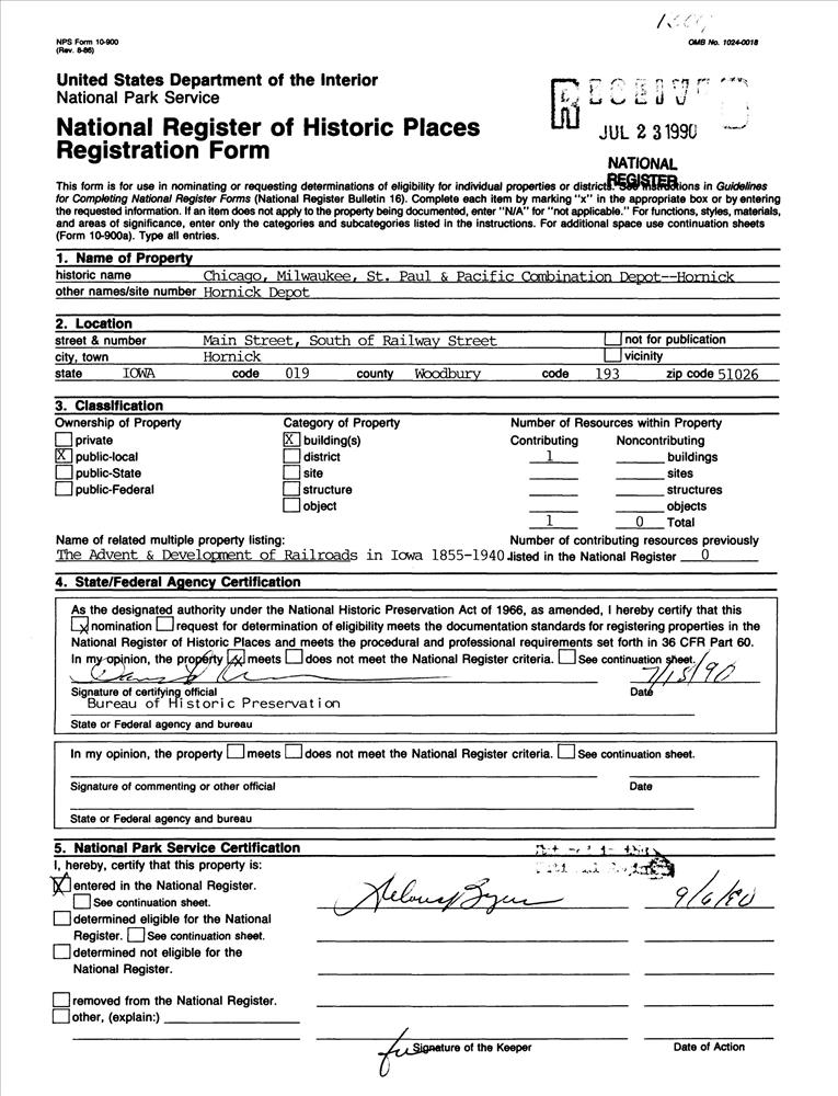 Chicago, Milwaukee, St. Paul & Pacific Combination Depot--Hornick