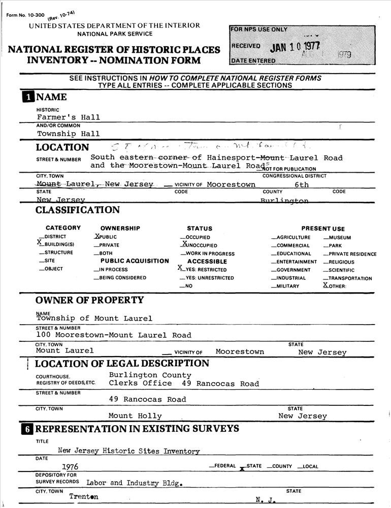 Moorestown ; SE corner of Moorestown on Mt. Laurel Rd.