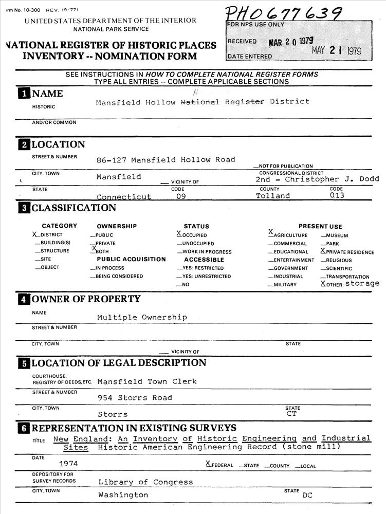 Mansfield ; 86-127 Mansfield Hollow Rd.