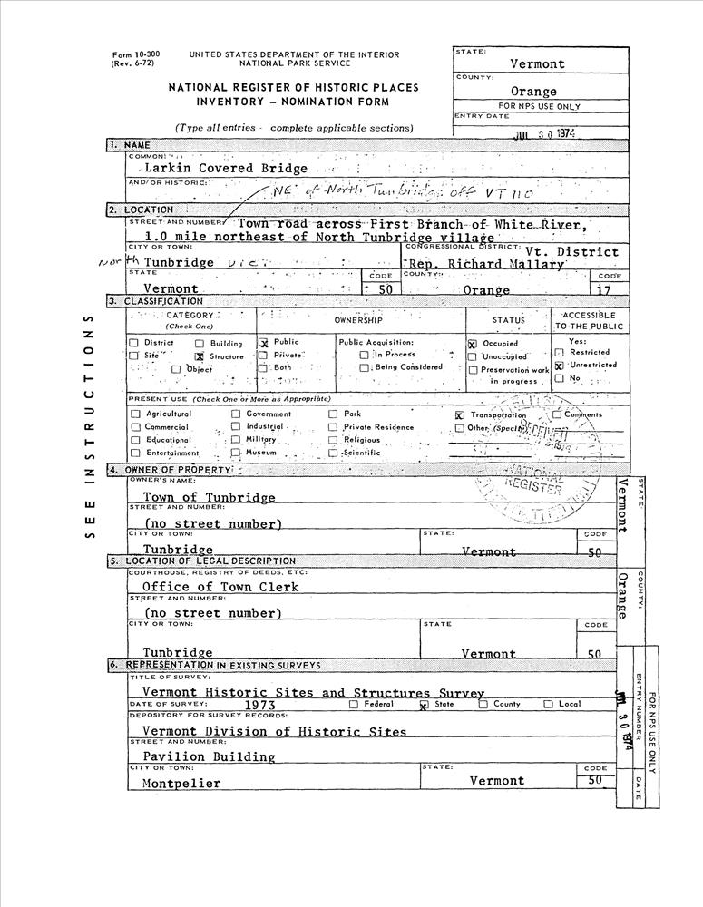 North Tunbridge ; NE of North Tunbridge off VT 110 over First Branch of White River
