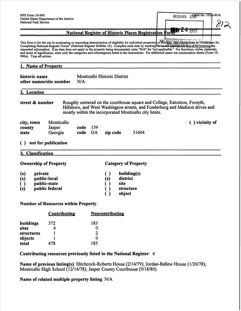 Monticello ; Roughly bounded by College, Eatonton, Forsyth, Hillsboro, and Washington Sts. and Funderburg, and Madison Drs.
