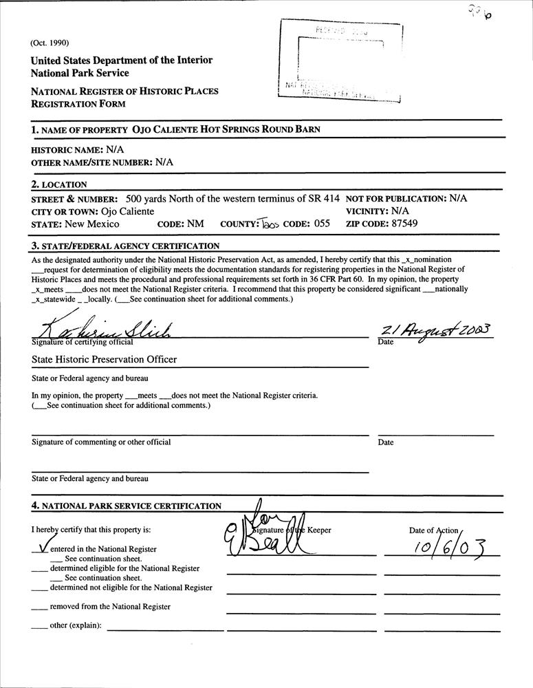 Ojo Caliente ; 500 uds N of the western terminus of NM 414