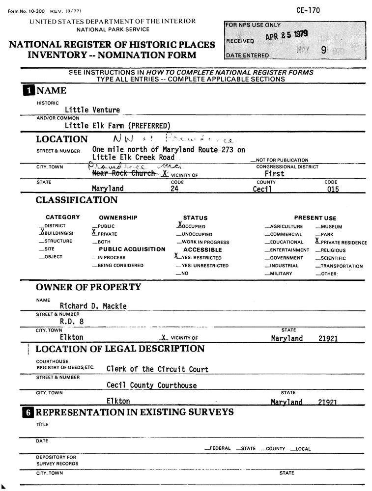 Providence ; NW of Providence on Little Elk Rd.