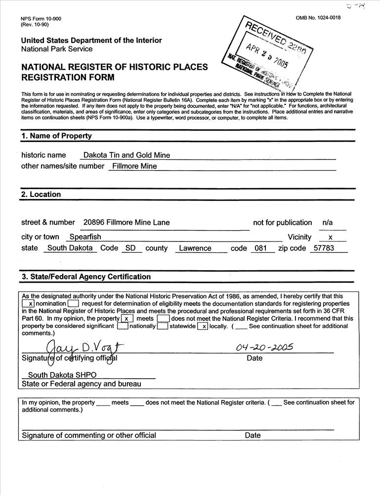 Spearfish ; 20896 Fillmore Mine Ln.