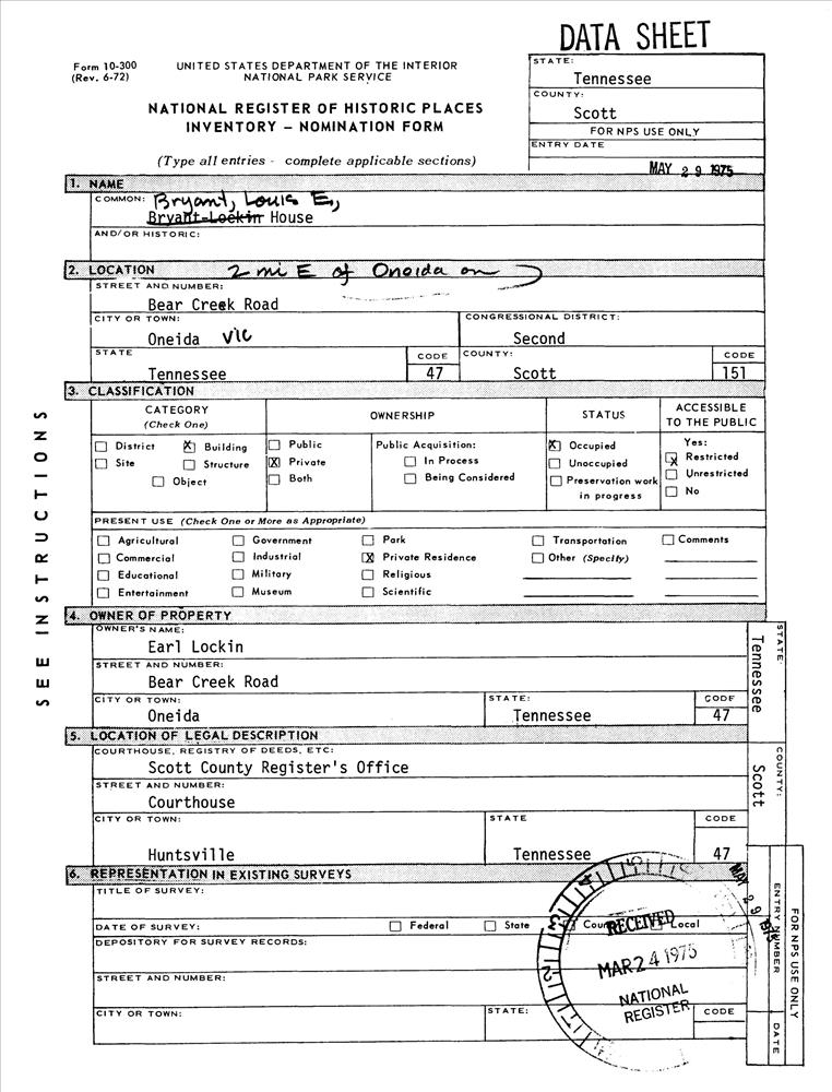 Oneida ; 2 mi. E of Oneida on Bear Creek Rd.