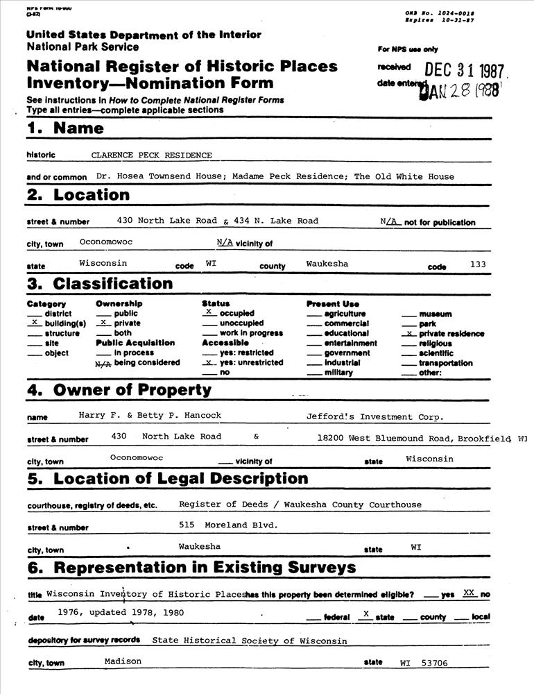 Oconomowoc ; 430 and 434 N. Lake Rd.