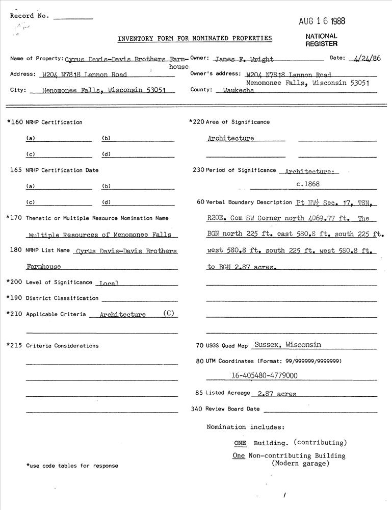 Menomonee Falls ; W204 N7818 Lannon Rd.