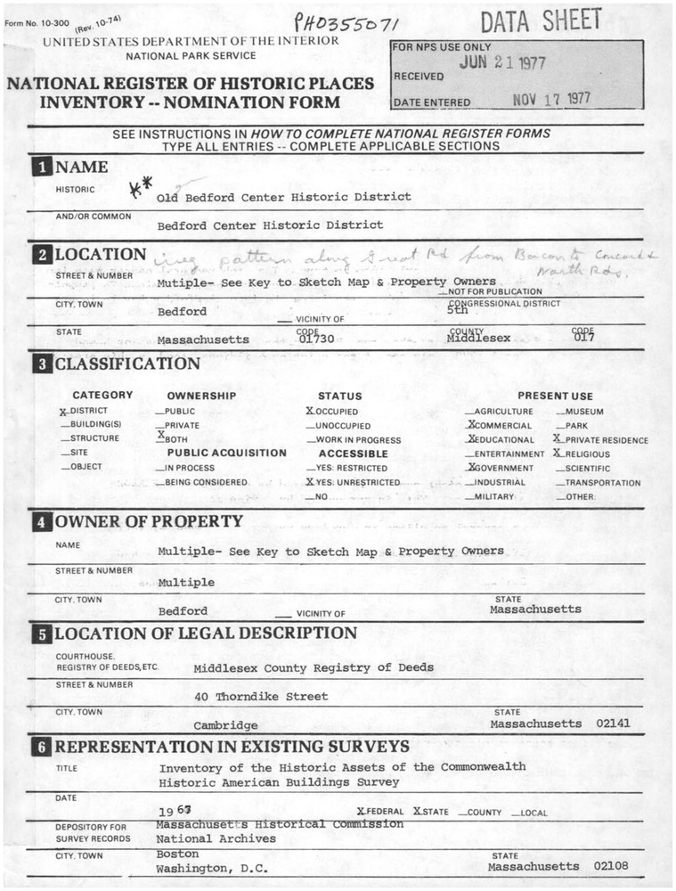 Bedford ; Irregular pattern along Great Rd. from Bacon to Concord and North Rds.