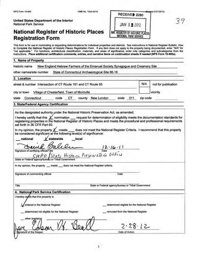 New England Hebrew Farmers of the Emanuel Society Synagogue and Creamery Site