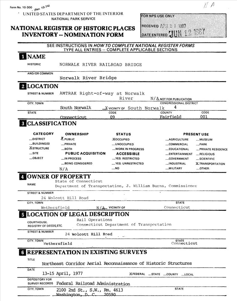 South Norwalk ; AMTRAK Right-of-way at Norwalk River