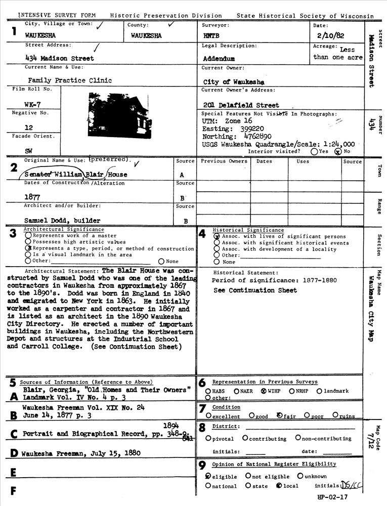 Waukesha ; 434 Madison St.