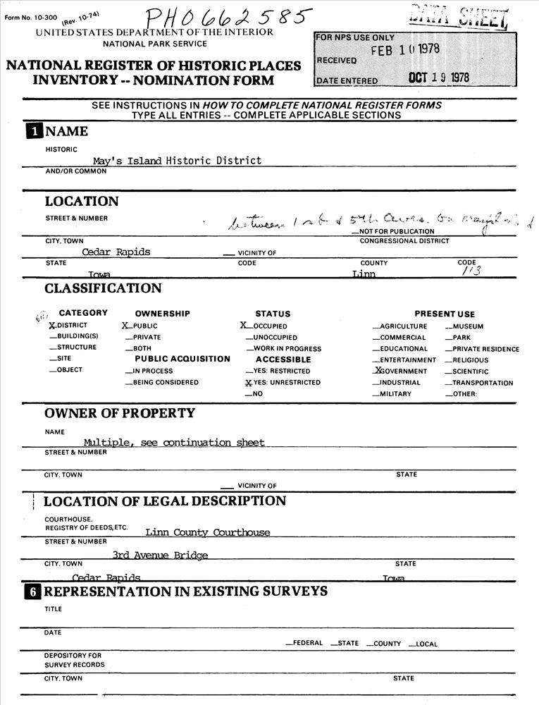 Cedar Rapids ; Between 1st and 5th Aves. on May Island
