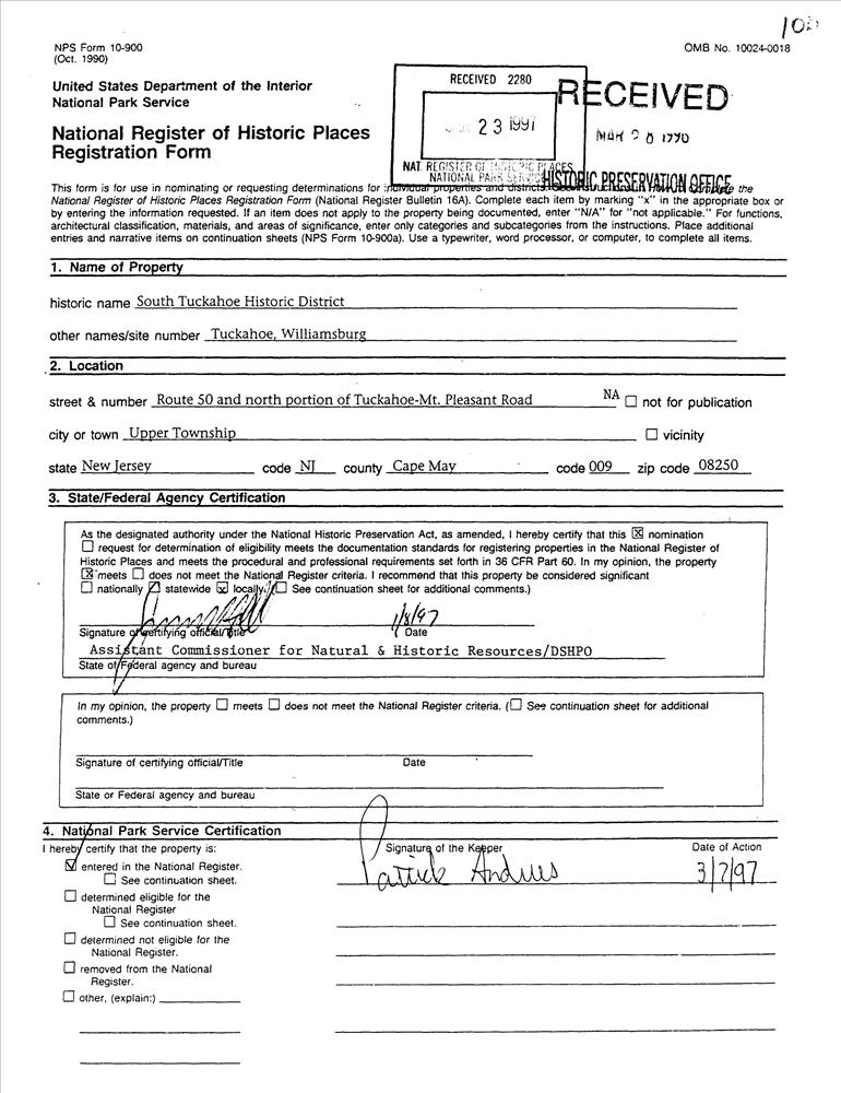 Tuckahoe ; Roughly, along NJ 557 and NJ 50 from the Tuckahoe River to Kendall Ln., Upper Township