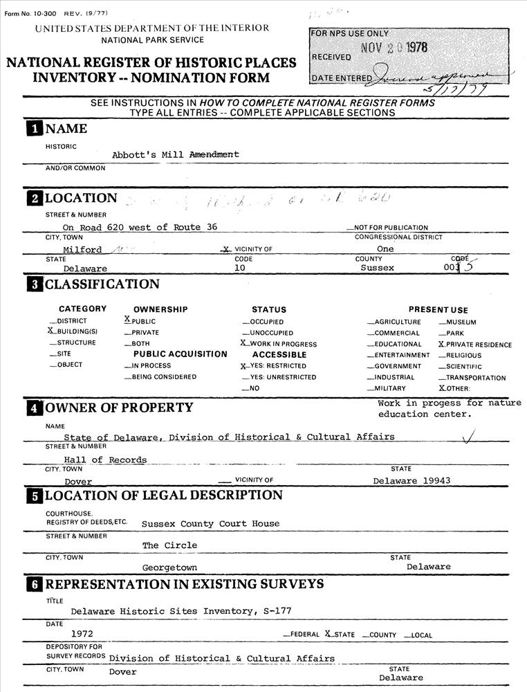 Milford ; Rd. 620 W of DE 36