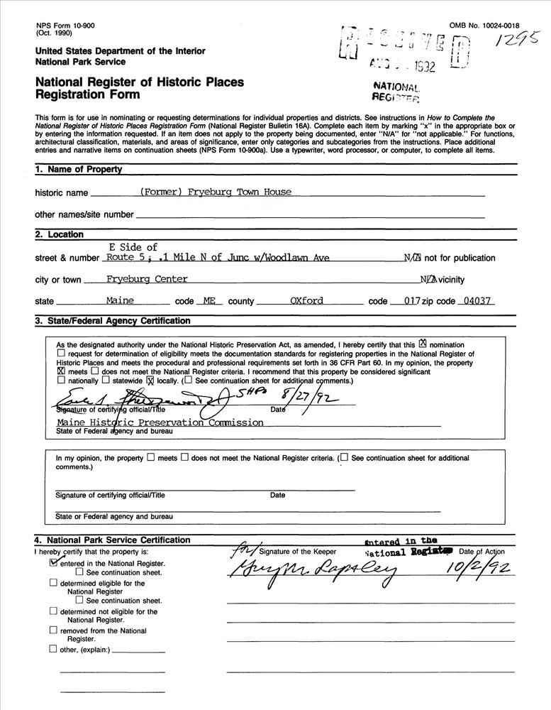 Fryeburg Center ; ME 5 E side, .1 mi. N of jct. with Woodlawn Ave.