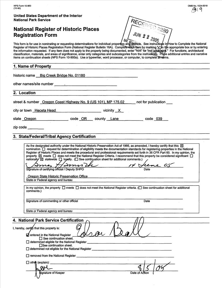 McCullough, C.B., Major Oregon Coast Highway Bridges MPS