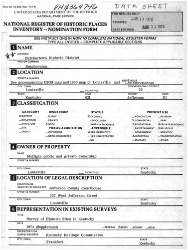 Louisville ; Roughly bounded by Main, Hancock, Geiger, Quincy Streets, United States Route 42 (US 42), South Fort Beargrass Creek, and Baxter Avenue