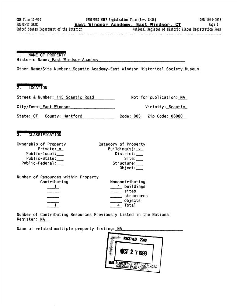 East Windsor ; 115 Scantic Rd.