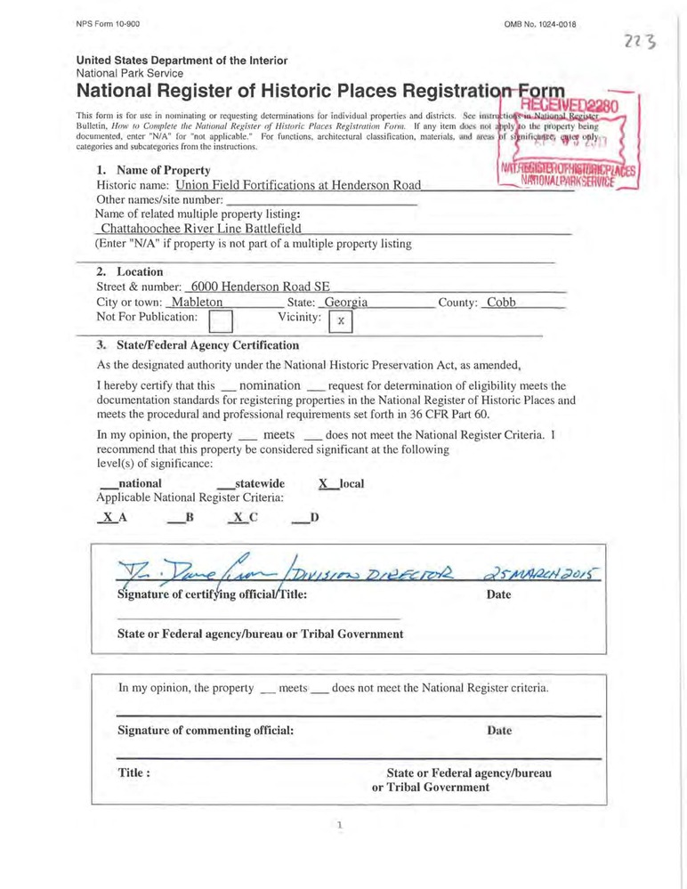 Union Field Fortifications at Henderson Road