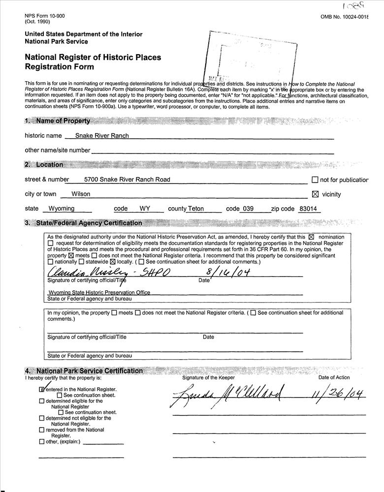 Wilson ; 5700 Snake River Ranch Rd.