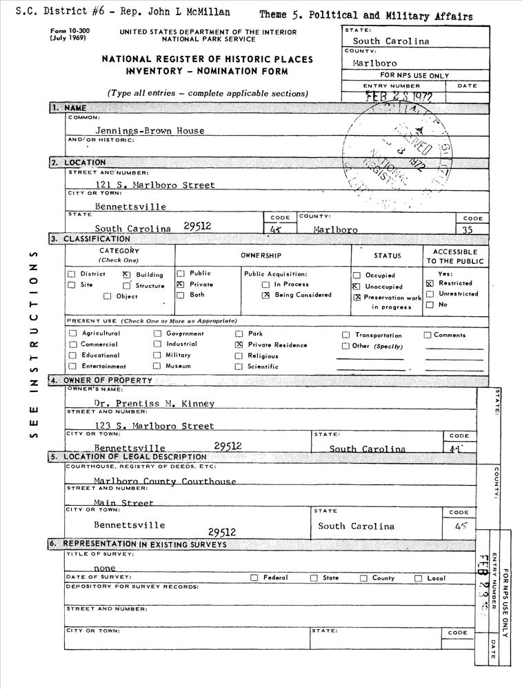 Bennettsville ; 121 S. Marlboro St.
