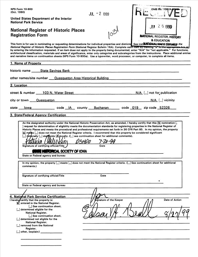Quasqueton ; 103 N. Water St.