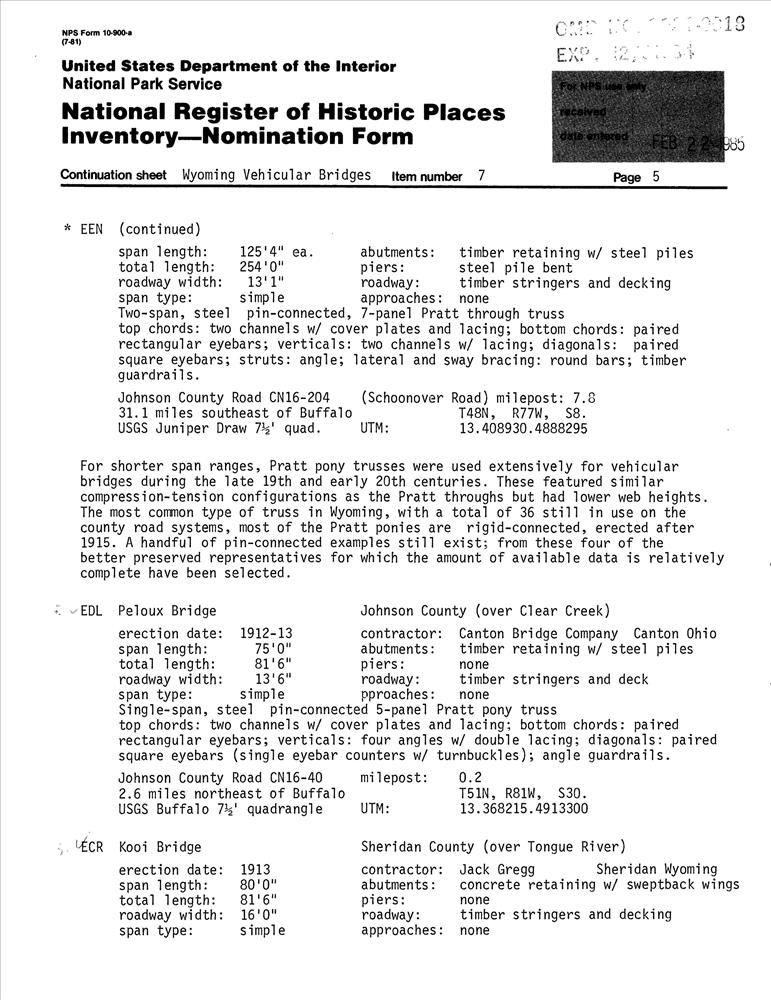 Vehicular Truss and Arch Bridges in Wyoming TR